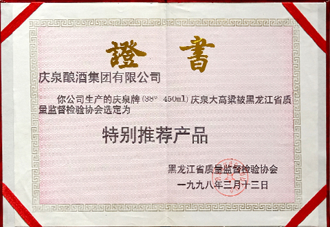 黑龍江東北大高粱酒業有限公司是慶安大高粱白酒的創始人,老慶安大高粱是黑龍江省綏化市慶安縣的地產,東北大高粱酒獲得國家地理標志證明商標。慶安大高梁酒業前身為慶安縣白酒廠,慶泉大高粱酒是個擁有百年制酒經驗的老國企,老慶安大高粱酒改革開放后為適應市場經濟的發展需求及根據自身的發展需要,白酒廠由國企改制成民營股份制企業。改革的春風為企業釋放出巨大壓力,大高粱系列白酒創始于1990年,至今已暢銷30余年。在上個世紀90年代,大高粱系列白酒在市場上受到了消費者的追捧,創造了業界的輝煌。那個年代的人都記得那句廣告語:喬遷之喜喝慶安大高粱,新婚之喜喝慶安大高粱,喜得貴子喝慶安大高粱,喜慶豐收喝慶安大高粱,你品我嘗還是慶安大高粱!同時東北大高梁酒也收獲了很多榮譽:黑龍江科技進步一等獎,黑龍江省著名商標,中國綠色食品稱號,中國消費者協會推薦商品,國家輕工產品博覽會金獎,黑龍江省優質產品,北京國際博覽會銀獎。
